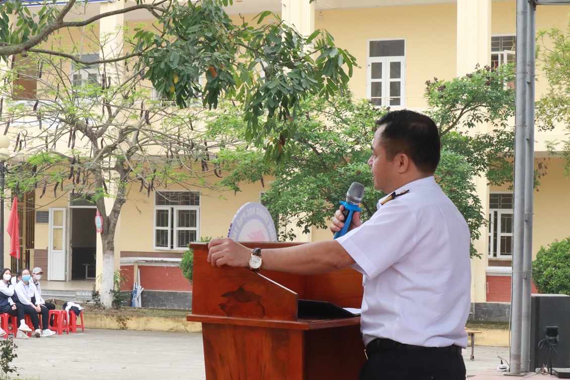 Ngày 17/4/2023, tại trường THPT Quốc Tuấn, huyện An Lão, Thành Phố Hải Phòng, Cục Hậu Cần Hải Quân phối hợp Ban tuyên giáo Huyện Ủy tuyên truyền biển đảo gắn với tuyên truyền thu hút nguồn nhân lực xây dựng lực lượng Hải quân trong thời kỳ mới năm 2023.